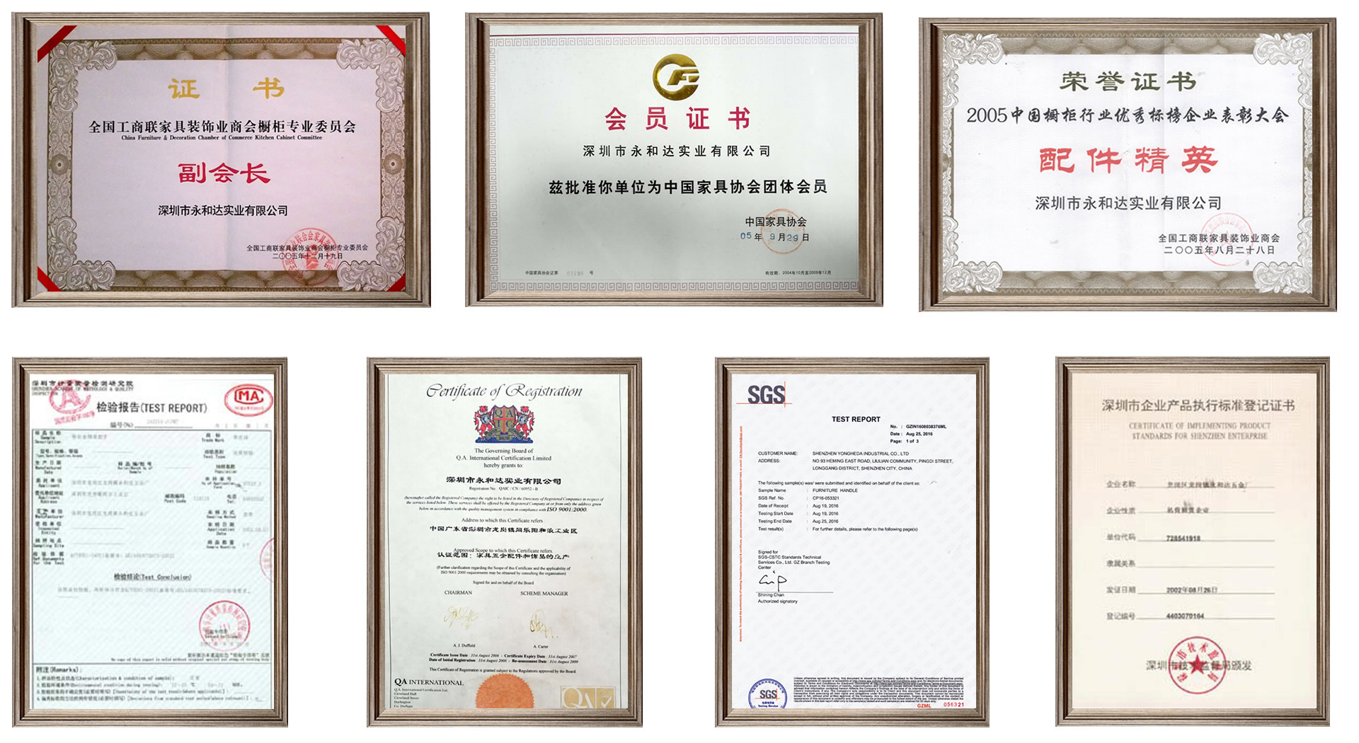 深圳市永和達實業有限公司成立于2001年,是一家專業制造家具把手、拉手、柜腳、掛衣鉤、層板夾及家 具五金裝飾配件,并擁有自主進出口權的知名私營企業,是同行業較早獲得ISO9001:2000質量管理體系認證廠 家,集研發、生產、銷售為一體多元化生產企業,經營品牌美達詩,董事長兼總經理黃建章先生。